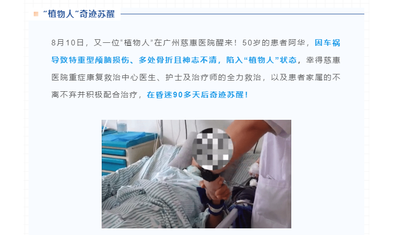 在医护人员的积极救治下,妻子的坚守陪伴下,8月10日,阿华终于苏醒了!他可以用点头、摇头和抬手的方式来和家属、医务人员进行交流。“不容易啊,最绝望的时候熬过来了,我们都替他们开心!”病友们说道。